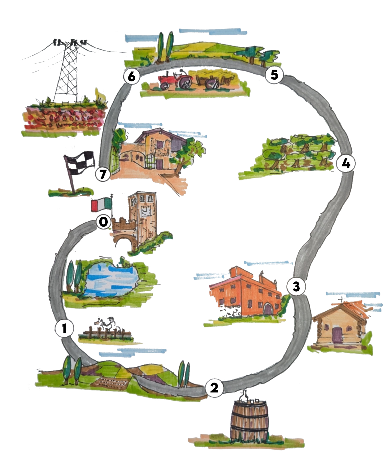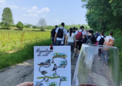 Lungo i ~13 km trovi 7 soste gastronomiche: dall’antipasto al dolce, con abbinamenti di vini locali. Il calice Γ¨ tuo per tutto il giorno.